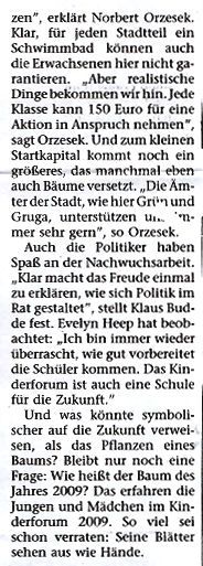 Gekommen waren außer Eltern Herr N. Orzesek vom Kinderforum, Frau E. Heep und Herr K. Budde als Ratsfrau und Ratsherr, die dazu beigetragen haben, dass der Baum gepflanzt werden konnte.
